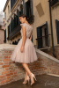 Коктейльное платье Франческа выполнено в стиле бэби-долл, возникшем в 60-х годах. Образ наивной куклы будет к лицу хрупким миниатюрным красоткам. Платье-трансформер без корсета сшито из блестящей ткани и многослойной фатиновой юбки. Его закрытый верх с короткими рукавами дополняет пышная юбка, напоминающая балетную пачку.