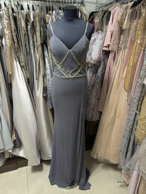 Серое платье на бретельках