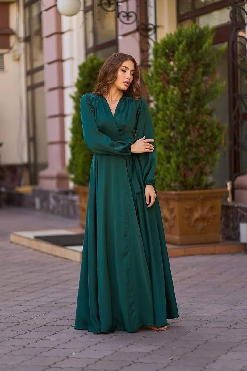 Шёлковое платье с рукавом фонарик
