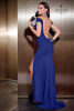 Длинное вечернее платье в пол Alyce Paris 2508. Верх платья выполнен из прозрачного материала, шея декорирована ожерельем из страз. Эффект обнаженной спины. На ноге имеется высокий разрез, платье выполнено из трикотажа.