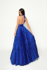 Великолепное платье для тех, кто излучает уверенность и не боится быть в центре внимания. Откровенное декольте компенсирует плиссированная пышная юбка, а бисерные завязки-кисточки добавляют дерзкий шарм образу.