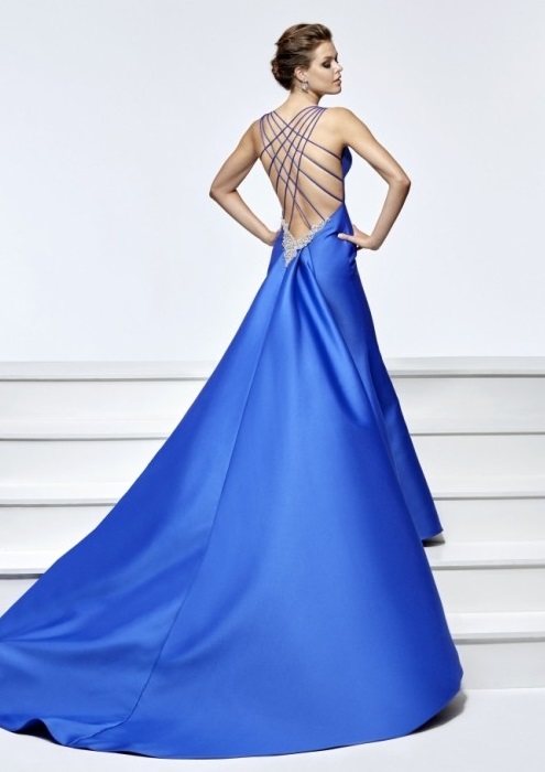 Изысканное платье силуэта "русалка" со шлейфом и шикарной спинкой и аппликацией из камней.
