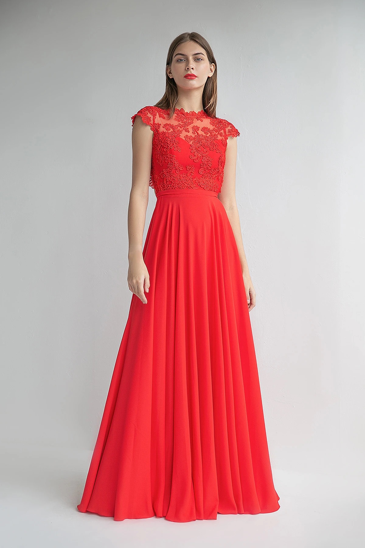 Платье с открытой спиной, абсолютно совершенная модель из стрейч-атласа и кружева красного цвета с кордовой нитью. Для стильных и романтичных девушек.