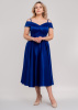 Элегантное женское платье длины миди, выполнено из магнуса, в стиле "Off the shoulder" (спадающее с плеча). Стройность и утонченность. Плечи и шея в данном платье оказываются открытыми, образуя четкую линию, подчеркивающую хрупкую красоту женского тела, а слегка расклешенная юбка делает данное платье еще более сказочным и необыкновенно нарядным.