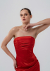 Необычайно женственное платье бюстье из магнуса. Длинная юбка на запах с высоким разрезом дополняет образ, а шнуровка по спинке делает максимально идеальную посадку. Верх лифа декорирован горизонтальными складками. Открытые плечи, декольте, интригующе подчеркивающее грудь – все это утонченно обыграно, выглядит сногсшибательно и изыскано.