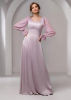 Романтичное платье в пол из магнуса на корсете. Вырез каре в зоне декольте с ноткой изящества в сочетании с длинными шифоновыми рукавами идеальный дуэт, способный украсить собой любой торжественный аутфит.