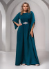 Роскошное длинное платье из креп-стрейча с классическим круглым вырезом и ассиметричным рукавом. Область талии декорирована пришивным элементом, усыпанным стразами. Силуэтный тип с расклешенным низом в сочетании с вертикальными защипами, создаст очень утонченный вид без каких-либо изъянов.