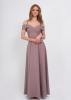 Длинное, расклешенное к низу платье, выполненное из шелк-плазмы, в стиле "Off the shoulder" (спадающее с плеча). Стройность и утонченность. Плечи и шея в данном платье оказываются открытыми, образуя четкую линию, подчеркивающую хрупкую красоту женского тела, а пышный и расклешенный низ в сочетании с высоким разрезом делает данное платье еще более сказочным и необыкновенно нарядным.