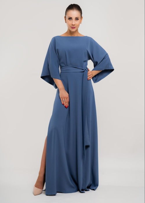 Тренды предстоящего сезона - расклешенный рукав и умопомрачительно высокие разрезы объединились в великолепном струящемся платье "Гейша". Элегантный вырез "лодочка", макси длина и съемный пояс, завязывающийся в бант, - отличительные особенности этого платья. А два высоких разреза в боковых швах юбки выглядят особенно интригующе при движении.
