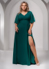 Длинное шифоновое платье в пол с рукавами - крылышки. V-образный вырез по горловине зрительно удлиняет силуэт, а высокий разрез по ноге добавляет пикантности модели. Плавность движений и комфорт обеспечат удивительно гармоничный образ, по настоящему радующий взгляды окружающих.