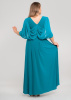 Классическое сочетание стрейчевого трикотажа и струящегося шифона прекрасно подойдет для девушек с пышными формами. Диагонально расположенные складочки запаха подчеркнут линию декольте, шифоновые драпировки на спине скроют несовершенства фигуры, а длина в пол визуально сделает выше и стройнее.