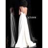 Вечернее платье от Jovani ультраактуального фасона усыпано сверкающими блестками и дополнено стелящимся шлейфом.