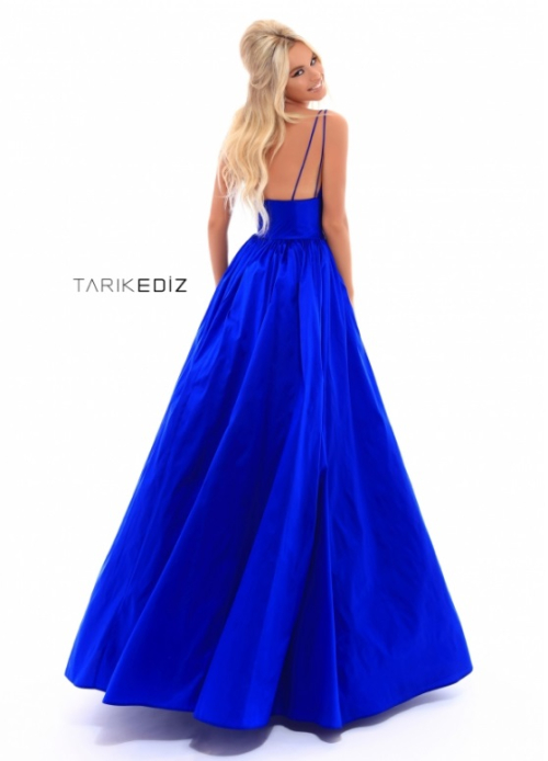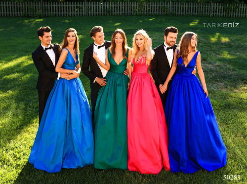 Вечернее пышное платье с глубоким V-образным вырезом.