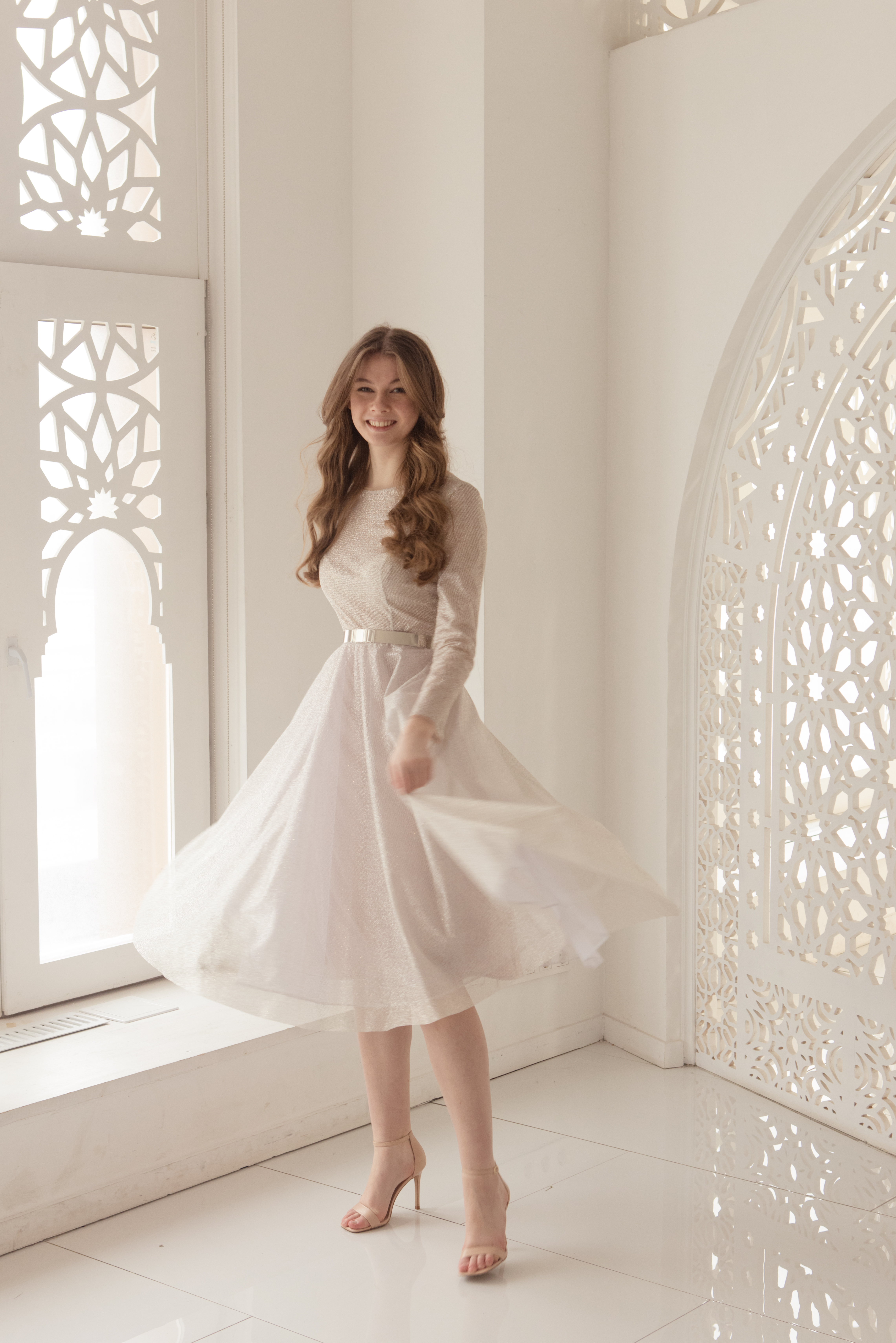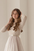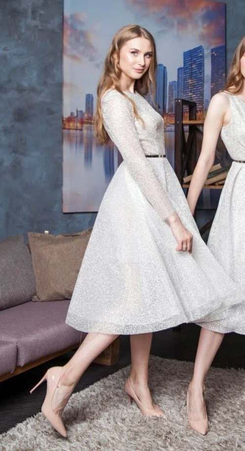 Прекрасная эльфийская принцесса Арвен казалась нежной и хрупкой, любовь к Арагорну приумножила её силы, сделала преданной, могущественной и великодушной. Её называли «вечерней звездой», тихое сияние которой изумительно точно передаёт струящаяся глиттерная ткань. Лаконичный полупрозрачный лиф оттенит загорелую кожу или подчеркнёт её белизну, пышная юбка привлечёт внимание к длинным ногам, небольшой шлейф сделает походку лёгкой, а образ восхитительно романтичным.